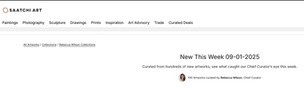 Shortly after the publication in August '25, I was delighted to receive this email from Saatchi at the beginning of September:"I’m very pleased to let you know that your work has been chosen to be featured in the upcoming New This Week Collection on Saatchi Art’s homepage!"